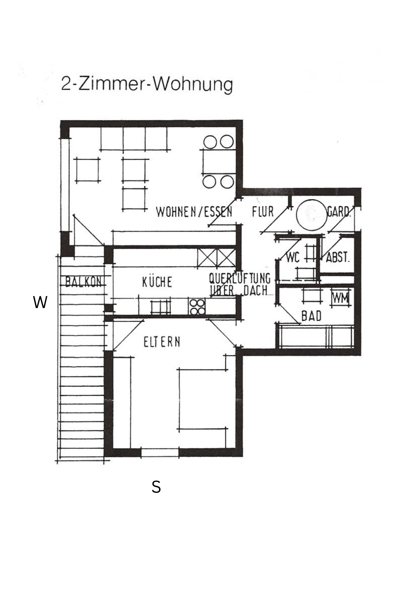 Ein Südwest-Balkon mit einer Fläche von 4,98 m² lädt zum Relaxen ein. Die Wohnung hat ein Badezimmer (ohne Tageslicht), ein schönes Schlafzimmer und helles Wohnzimmer. Von beiden Wohnräumen haben Sie Zugang zum Balkon.